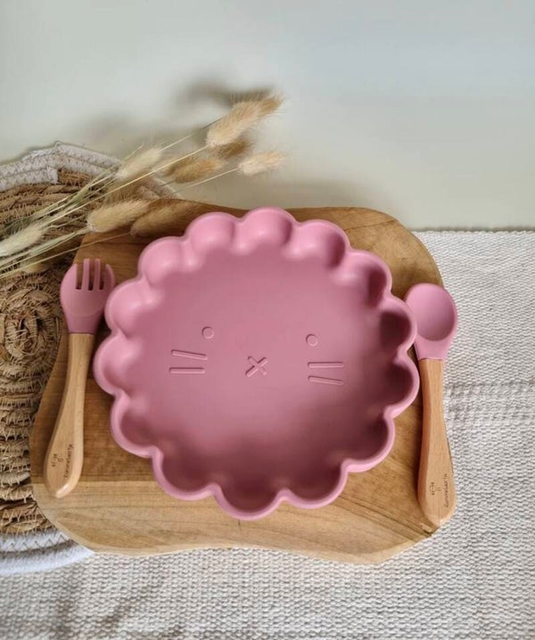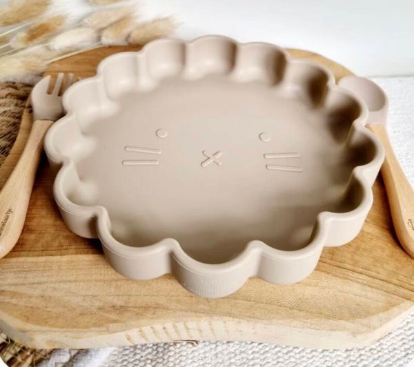 Siliconen set bordje leeuw + vork en lepel